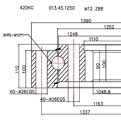 回轉支承選擇:實際使用承載力點 必須在承載能力曲線以下方可使用.